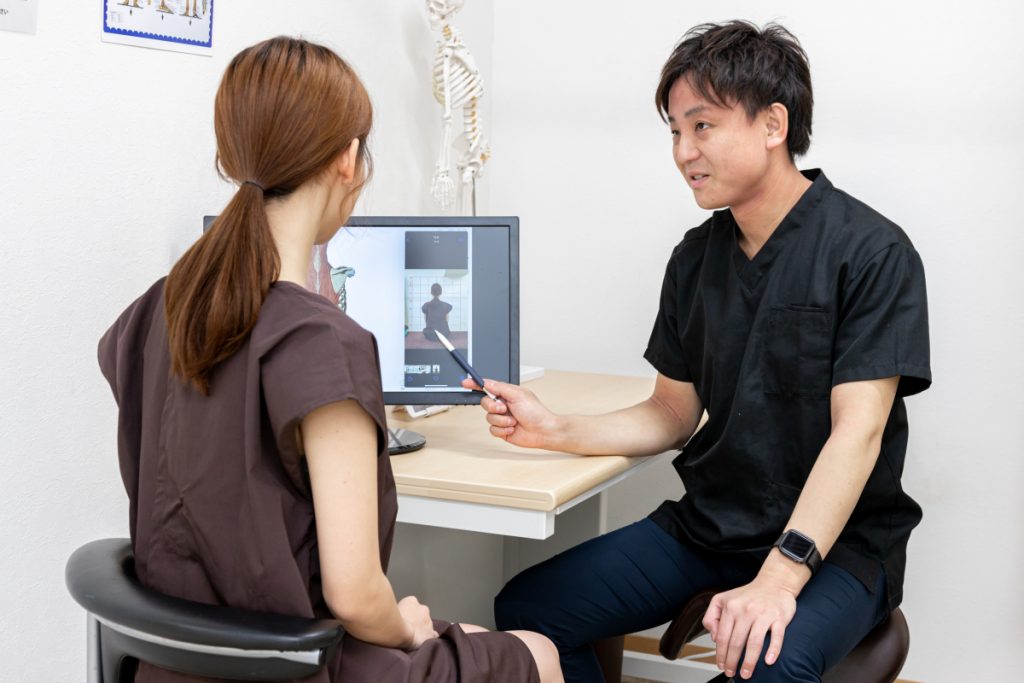 施術効果を体感していただき、自宅で行うストレッチや姿勢指導を行います。